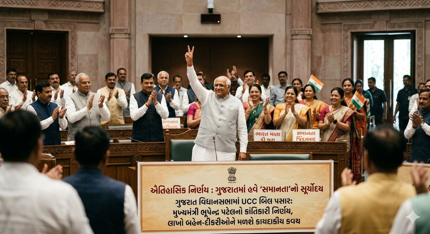 आज का दिन गुजरात के इतिहास में स्वर्णिम अक्षरों में अंकित हो गया है। लंबी चर्चाओं, कानूनी जद्दोजहद और जनता की अपेक्षाओं पर खरा उतरते हुए मुख्यमंत्री भूपेंद्र भाई पटेल की सरकार ने समान नागरिक संहिता (Uniform Civil Code – UCC) बिल विधानसभा में पारित कर राज्य में एक नए युग की शुरुआत की है। यह निर्णय केवल एक कानूनी सुधार नहीं है, बल्कि राज्य की प्रत्येक बहन, बेटी और माता के सम्मान और सुरक्षा की विजय है।